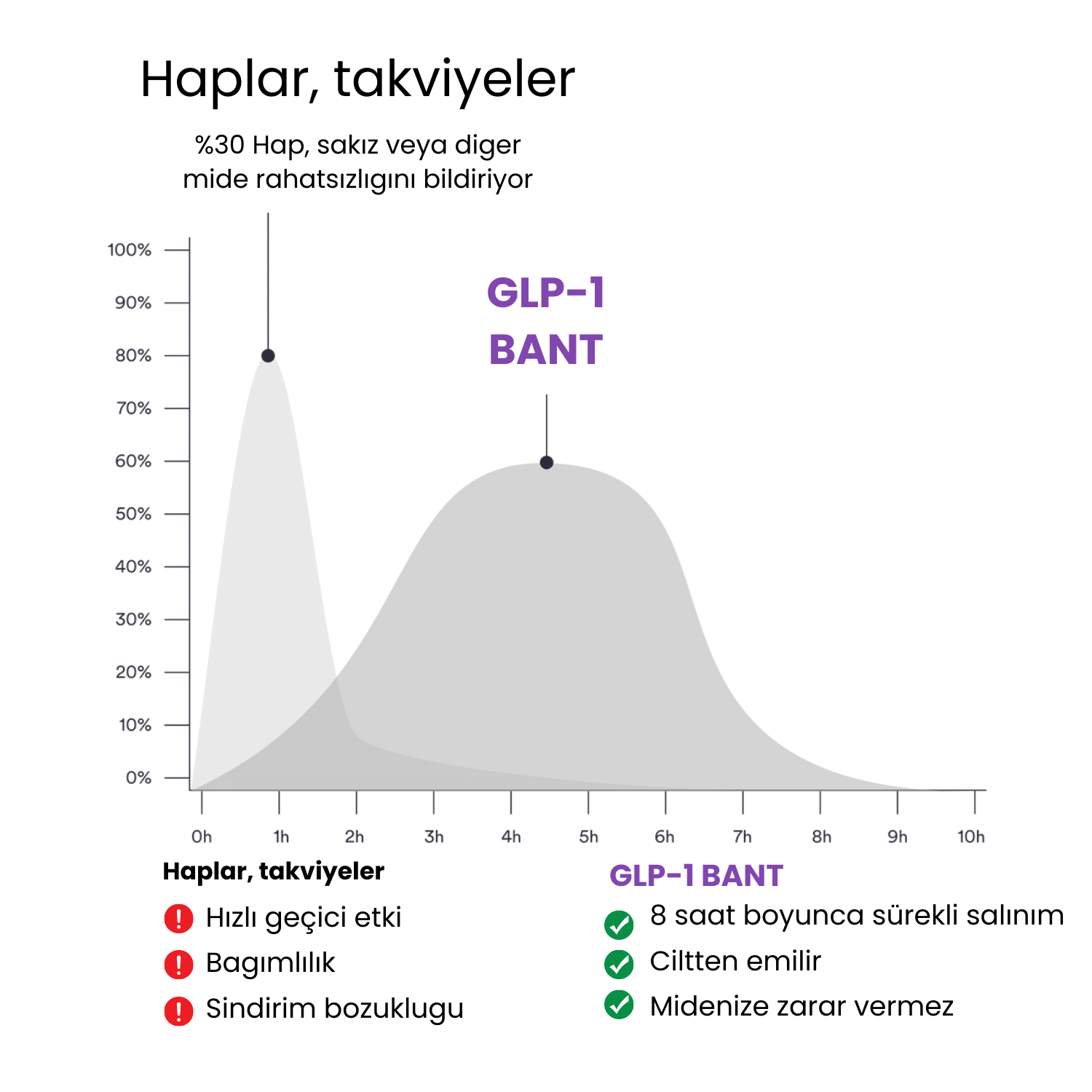 GLP-1 yamaları, kilo vermek isteyenler için doğal içeriklerle iştah kontrolü sağlayan, hap ve iğne yerine kullanılan pratik bir yöntemdir. Transdermal teknoloji sayesinde cilt yoluyla emilir ve gün boyu etkisini sürdürür. Kullanıcı yorumlarına göre daha hızlı tokluk hissi, porsiyon kontrolü ve enerji artışı sunar. Bilimsel olarak desteklenen GLP-1 hormonunun etkilerini taklit eden bu yamalar, sürdürülebilir kilo kaybı için yardımcı bir alternatif olabilir. Ancak reçeteli GLP-1 ilaçlarının yerine geçmez; daha çok doğal kilo verme desteği arayanlar için uygundur.