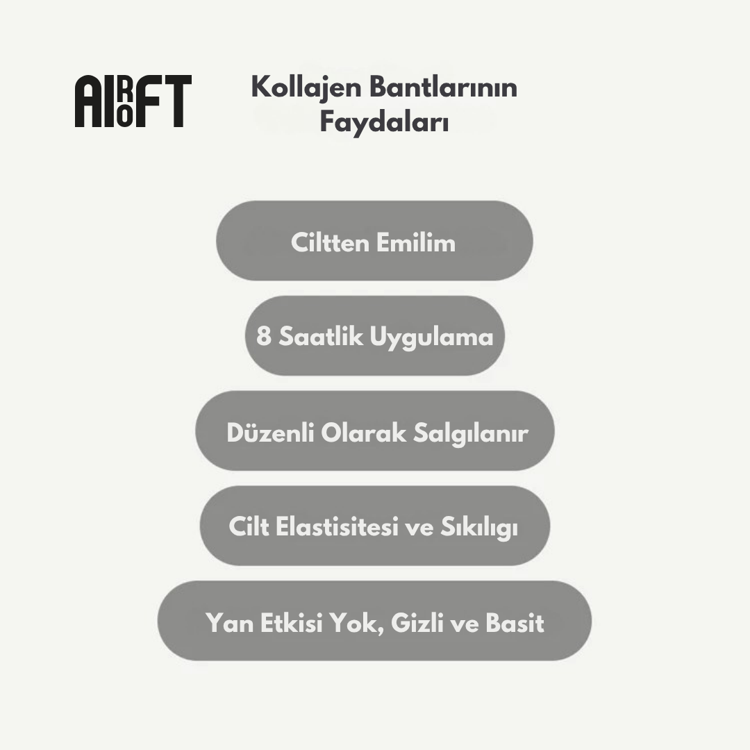 Kolajen bantları, vücudunuzun kendi kolajen proteinlerini yeniden yapılandırarak cilt elastikiyetini artırmaya yardımcı olur.